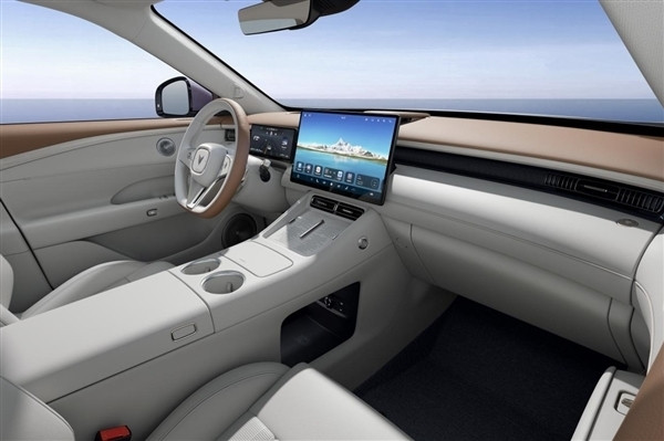 进入车内,新车提供极光紫,琥珀棕,深海蓝三种内饰颜色,搭载15.6英寸2K超清屏可实现五屏联动,支持鸿蒙手机一键投屏及跨设备任务流转,音频、导航等信息可无缝同步至车机。